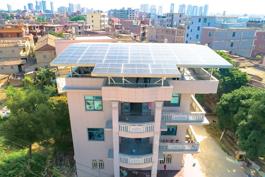 We offer investors the industry's first fully pre-assembled household rooftop solar PV systems. These welding-free, waterproof structures feature large spans, high ceilings, and a spacious design that is both aesthetic and practical. Capable of withstanding Level 12 typhoons, they are safe and stable, with installation completed in as fast as 16 hours. Our four product types include: solar canopies, north-south sloped rooftop systems, rooftop solar arrays, and courtyard PV systems. They are fully compatible with diverse installation environments such as flat roofs, roofs with staircases, staggered flat roofs, various sloped roofs, and ground-level courtyards—reshaping rural landscapes through energy technology.